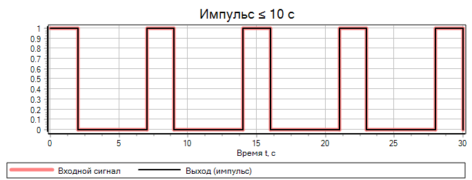 | Длительность импульса, с | tau | Время, в течение которого блок формирует логическую единицу на выходе. Длительность импульса может быть меньше заданной, при исчезновении входного сигнала. | [10] | Массив |