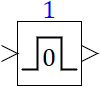 Формирует импульс заданной длительности и не более при изменении входа от нуля до единицы. Алгоритм работы блока: если входной сигнал изменился с нулевого значения на единичное (или на ненулевое), то блок формирует на выходе логическую единицу в течение заданного времени. При этом, если входной сигнал исчез ранее заданной длительности импульса (стал равным 0), блок учитывает это и прекращает подачу импульса на выходе.