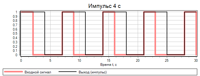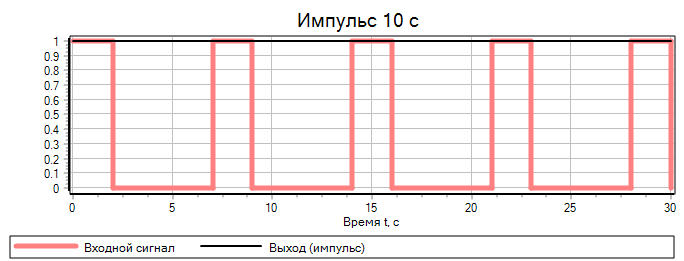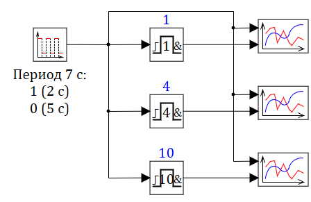 Рассмотрим три блока с длительностью импульсов 1, 4 и 10 секунд. При этом на вход в блоки будем подавать один и
