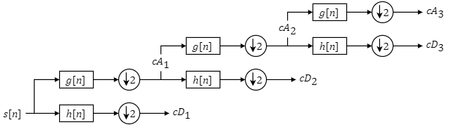 Рис. 2. Диаграмма разложения сигнала в ДВП на 3 уровнях декомпозиции.