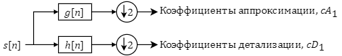 h[n] и фильтра нижних частот g[n] с последующим двоичным