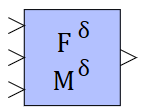 Блок реализует расчет проекций силы и момента от перекладки руля морского подвижного объекта (МПО) на оси связанной системе координат (ССК).