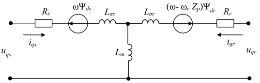 Uqs, iqs, Ψqs – проекции напряжения, тока и потокосцепления статора на ось q;