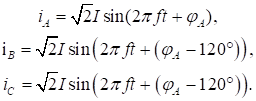 Фазные токи источника описываются уравнениями: