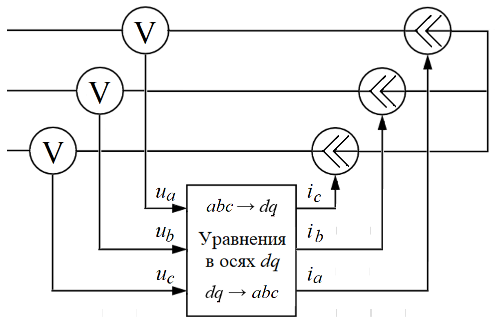 Преобразование от abc координат к dq осуществляется следующим образом: