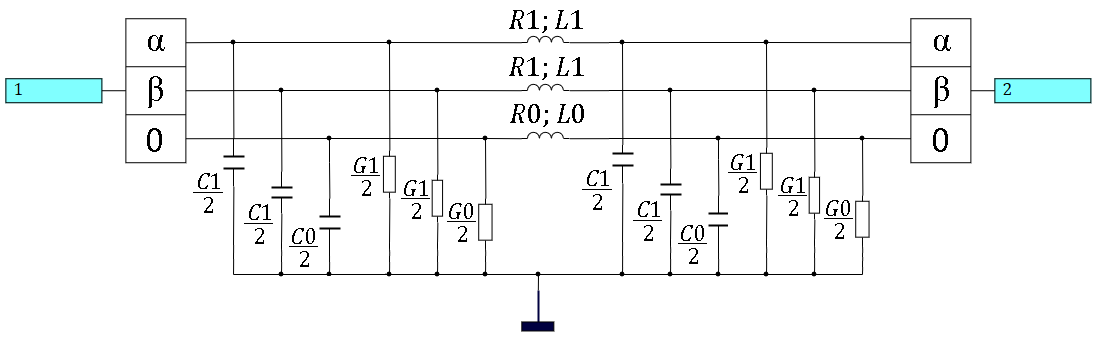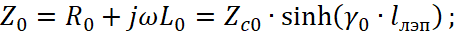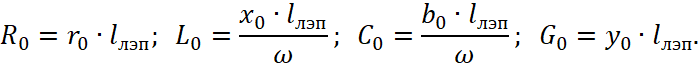 - G0, C0 – поперечная проводимость и ёмкость линии нулевой последовательности.