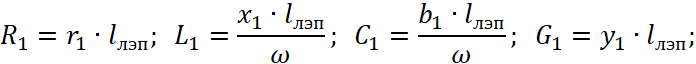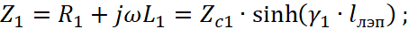- G1, C1 – поперечная проводимость и ёмкость линии прямой последовательности;