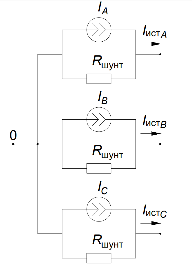 - IA, IB, IC – заданный фазный ток (идеальные источники)