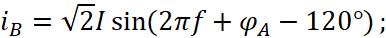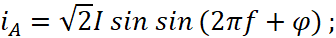 - φA – угол фазы А, заданный в свойствах блока, оператор α=1∠120°.