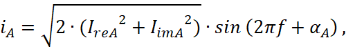 - Мнимая составляющая тока фазы A, А (расчетное значение для справки);
