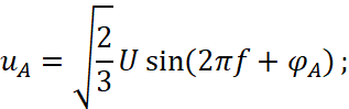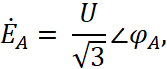 - φA – угол фазы А, заданные в свойствах блока, оператор α=1∠120°.