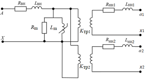 - RНН2, LНН2 – активное сопротивление и индуктивность обмотки низшего напряжения 2 (НН2);