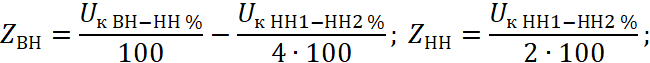 - Напряжение короткого замыкания ВН-НН1//НН2, %;