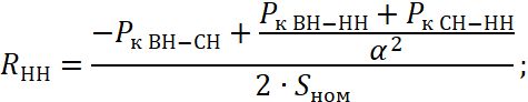 - Напряжение короткого замыкания СН-НН, %;