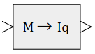 Блок осуществляет вычисление сигнала тока по оси q соответствующее заданному моменту двигателя (Me). Значение тока может вычисляться в абсолютных или относительных единицах.