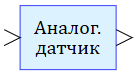 Блок реализует пропорциональное преобразование сигнала с фильтрацией и ограничением. Может использоваться для моделирования аналоговых датчиков тока, напряжения, скорости, положения.
