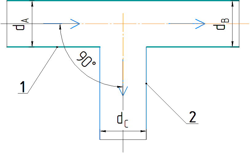 | Внутренний диаметр бокового ответвления, мм | d_C | Внутренний диаметр бокового ответвления (Рисунок 1). При вводе значений диаметров необходимо выполнять следующее условие d_С ≤ d_A | 5 | Вещественное |