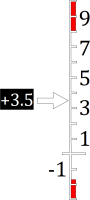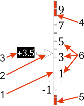 перемещающейся стрелки относительно неподвижной шкалы. Слева от стрелки отображается значение