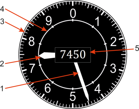 Блок по внешнему виду имитирует работу индикатора высотомера двухстрелочного. В блоке