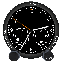 Управление механизмом отсчета времени полета осуществляется нажатием кнопки (поз. 4 Рисунок 1), расположенной слева. Нажатие этой кнопки переключает режимы работы - "Пуск", "Стоп", "Сброс". Первое нажатие включает механизм отсчета времени полета (режим "Пуск"), второе нажатие - останавливает механизм (режим "Стоп"), третье нажатие - сбрасывает стрелки на 0 (режим "Сброс"). При этом индикатор режимов работы механизма отсчета времени полета (поз. 7 Рисунок 1) меняет свой цвет в зависимости от режима: механизм запущен (режим "Пуск") - черный круг, механизм остановлен (режим "Стоп") - черный полукруг и белый полукруг, как показано на рисунке (Рисунок 1), механизм сброшен на 0 (режим "Сброс") - белый круг.