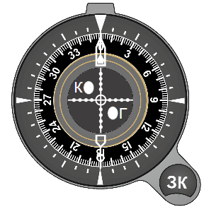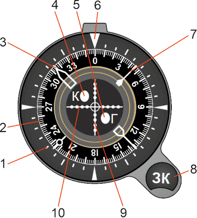 - Ручка установки заданного курса (ЗК)