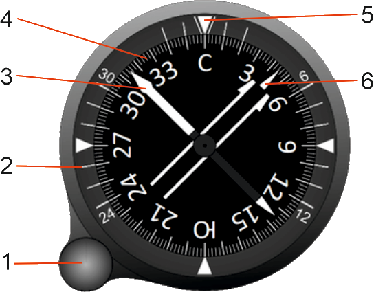 - Внутренняя вращающаяся шкала курса