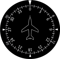 Блок имитирует работу указателя курса, по которому определяется угол курса. Отсчет показаний производится по внутренней вращающейся шкале относительно неподвижного верхнего треугольного индекса. При этом силуэт самолета всегда остается неподвижным. В блоке значение угла курса определяет величину угла поворота внутренней подвижной шкалы относительно неподвижного верхнего треугольного индекса.
