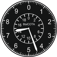 | Высота, м | H | Свойство определяет положение стрелок указателя относительно неподвижных шкал. Величина высоты в километрах определяет положение короткой широкой стрелки относительно внутренней шкалы. Величина высоты в метрах определяет положение узкой длинной стрелки относительно внешней шкалы | 0 | Вещественное |