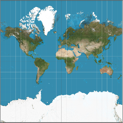 Блок имитирует карту поверхности Земли (равноугольная цилиндрическая проекция Меркатора) и позволяет отображать на ней точки с заданными географическими координатами (широтой и долготой). Преобразование координат происходит по следующим формулам: