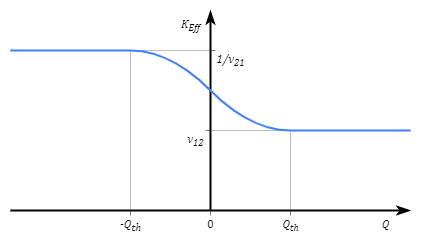 Для достижения устойчивости численного решения при изменении направления передачи мощности значение коэффициента передачи момента KEff плавно изменяется от значения ν12 к значению 1/ν12 Крутящие моменты рассчитываются по формуле: