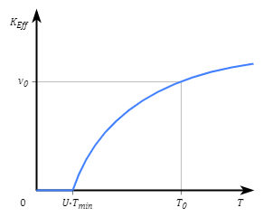 - "Табличный КПД от температуры" – значение КПД рассчитывается путем линейной интерполяции таблицы в зависимости от значения температуры редуктора