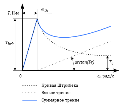 | Модель трения | MType | Тип модели трения. Возможные значения: "Кривая Штрибека", "Табличная" | Кривая Штрибека | Перечисление |