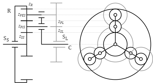 - Внутренней и внешней планет малой звезды ZIS и ZES (internal и external) с числами зубьев ZPIS и ZPES