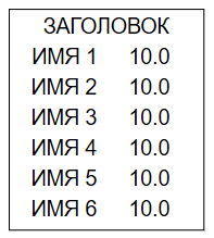 | Значение параметра 1…6 | FieldTitle | Текстовое значение заголовка списка параметров | ЗАГОЛОВОК | Текст |
