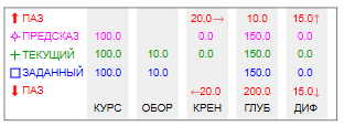 | Заданный дифферент | ZadPsi | Заданное значение параметра угла дифферента. Свойство доступно, если активирован режим "Отображение заданного значения дифферента" | 0 | Вещественное |