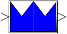 При включенной анимации на блоке отображается вид результата аккумуляции правил (синяя фигура) и значение выходной величины (красная линия).