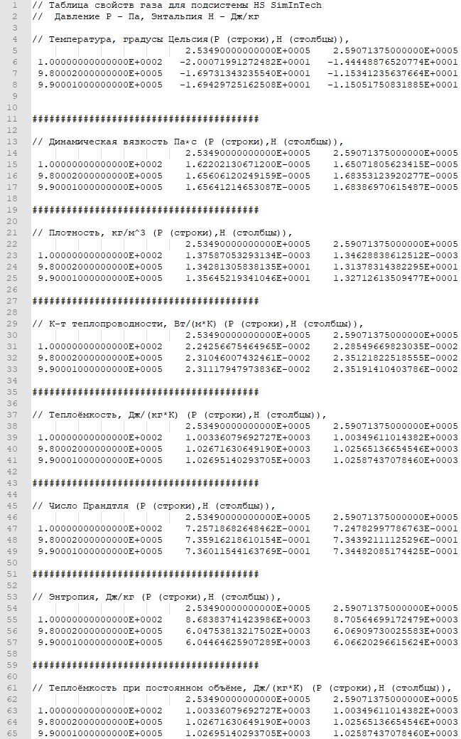 которая в свою очередь будет вычислять значения теплофизических свойств путем интерполяции по указанной таблице.