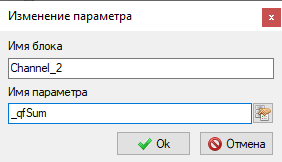 Аналогично нужно привязать к графику и сигнал Y_temp. На этом работа с графиком температур завершена. Ко второму графику, аналогично, привяжем имя параметра холодной трубы, соответствующего суммарной мощности, поступающей через стенку. Правила обращения к параметрам в данном случае те же, что и при присвоении их сигналам в скрипте – сначала имя блока (Channel_2), затем через точку имя соответствующего параметра (_qfSum).