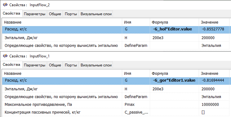 Теперь отредактируем свойства блоков "HS – Подпитка", чтобы они учитывали введенный, в поле соответствующего редактора, коэффициент. В подпитке каждой линии необходимо умножить переменную, означающую расход на значение свойства "Value" соответствующего редактора. Механизм обращения к свойствам блокам, такой же, как описывался ранее: <имя блока>.<имя параметра>.