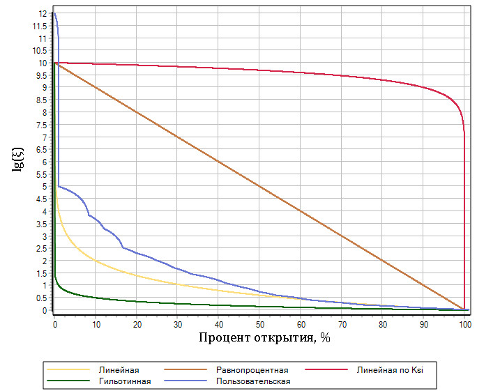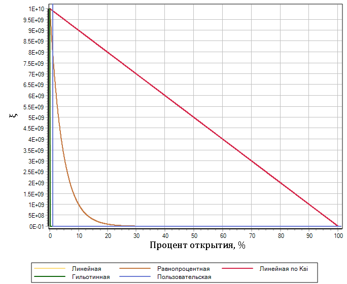 Коэффициент местного сопротивления вычисляется с помощью выражения: - Для пользовательской характеристики, при помощи линейной интерполяции по таблице вычисляется ξ в зависимости от текущего положения State (свойства KsiMin и KsiMax при этом не учитываются).