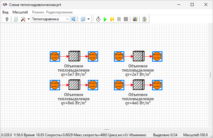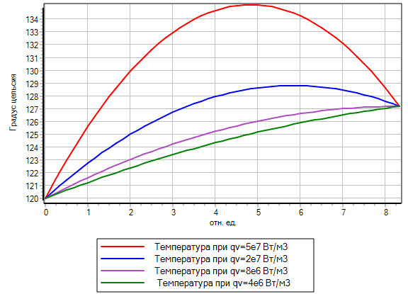 Рис. 1. Пример использования блока с ненулевым объемным тепловыделением и разными