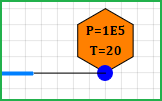 Оранжевый шестиугольник является дочерним не расчетным блоком, который отображает значения свойств P и T (или H, если определяющий параметр - энтальпия), заданные в граничном узле. При необходимости он может быть удален со схемы и это не повлияет на расчет.