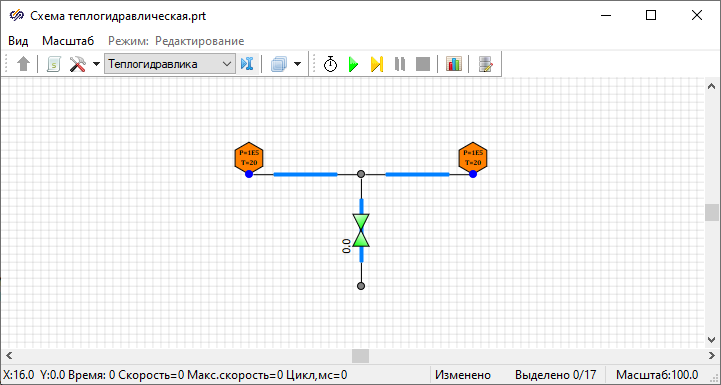 | Начальная температура, °С | T0 | Величина температуры, которая будет присвоена температуре теплоносителя в узле в начале расчета. Если определяющий параметр DefineParam установлен в значение "Энтальпия", свойство не учитывается, а начальная температура будет вычислена по энтальпии H0 (при заданном давлении P0) | 20 | Вещественное |