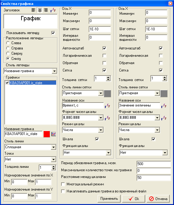 Свойства отображения любого графика можно изменять. Для этого в окне построения зависимости следует правой кнопки "мыши" вызвать меню Свойства (см. Рис. 3).