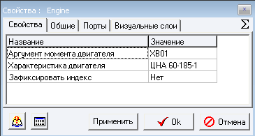 Рис. 3. Список характеристик в для элемента "Электродвигатель". - Зафиксировать индекс - данное значение позволяет задать индекс расчетного элемента в файле исходных данных ТРР.