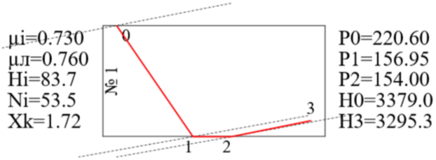 Весь процесс строится с учетом относительного внутреннего КПД отсека турбины, по параметрам из базы данных.