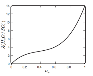 Рис. 3. Зависимость влагосодержания λ от активности воды aw Для случая λ > 4 [2, с. 239]: