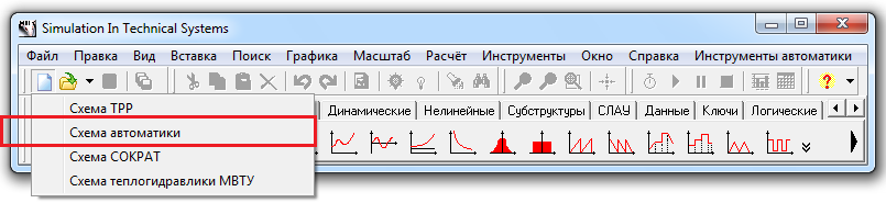 моделирование работы расчетной схемы при помощи встроенного ядра автоматики SimInTech без