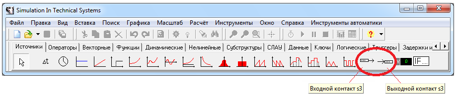 Рис. 2. Блоки входного и выходного контактов - из любых закладок (Источники,