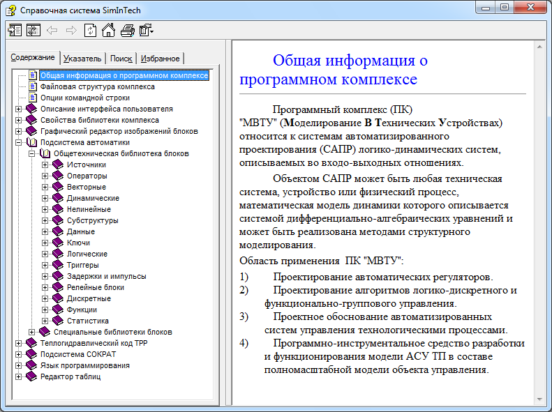 Рис. 3. Схема алгоритма Подробное описание состава блоков и их свойств приведено в справочной системе, которая вызывается командой главного меню Справка → Содержание, в соответствии с рисунком (Рис. 4).